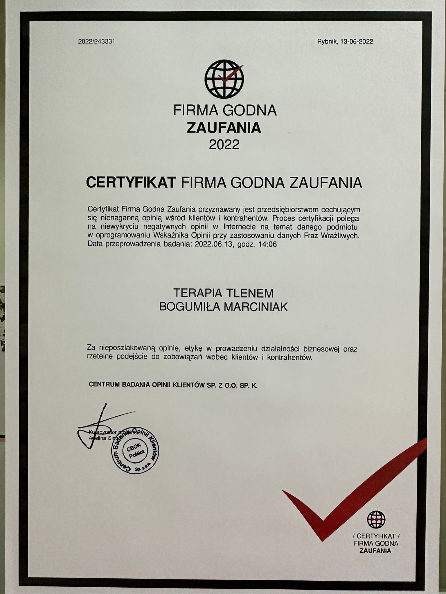 Jesteśmy certyfikowanym gabinetem